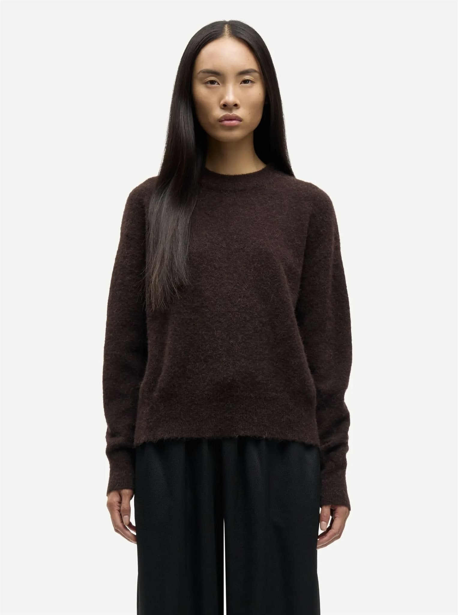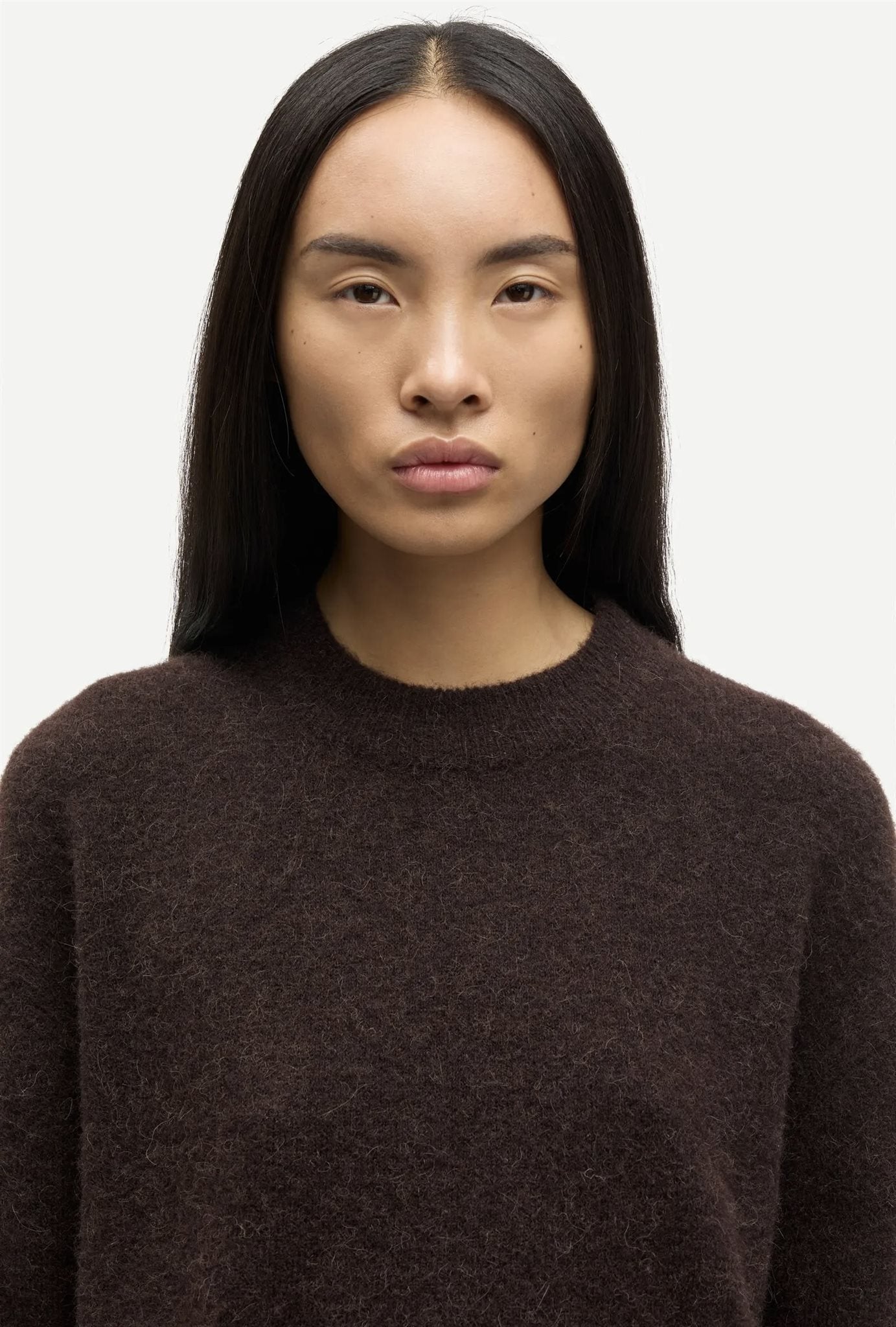 Sweater with a regular fit and dropped shoulders. Rib-knitted crewneck collar, cuffs, and hem. Main material made from an elastic blend with wool and alpaca wool.