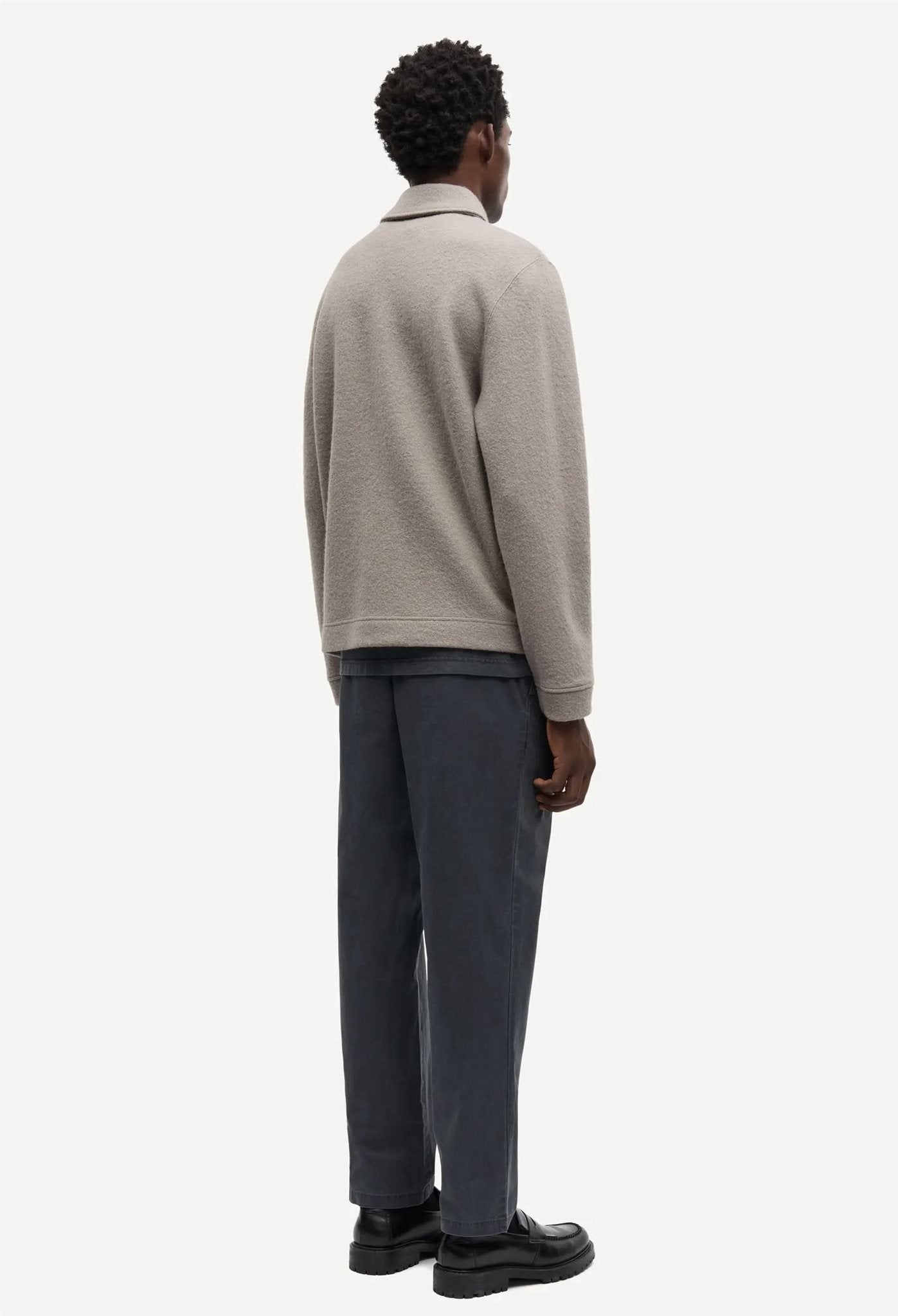 Regular fitting cardigan with a double ended zip fastening. Pointed collar, chest pocket. Felted 100% wool sweatshirt fabric.
