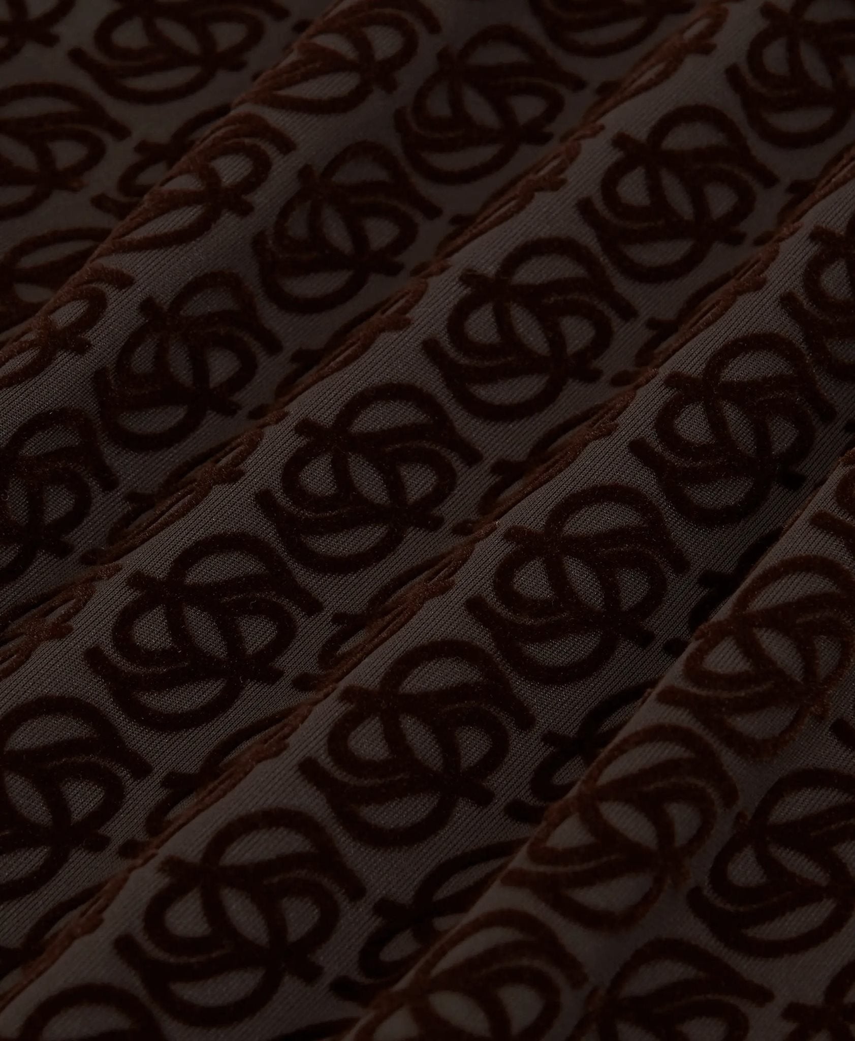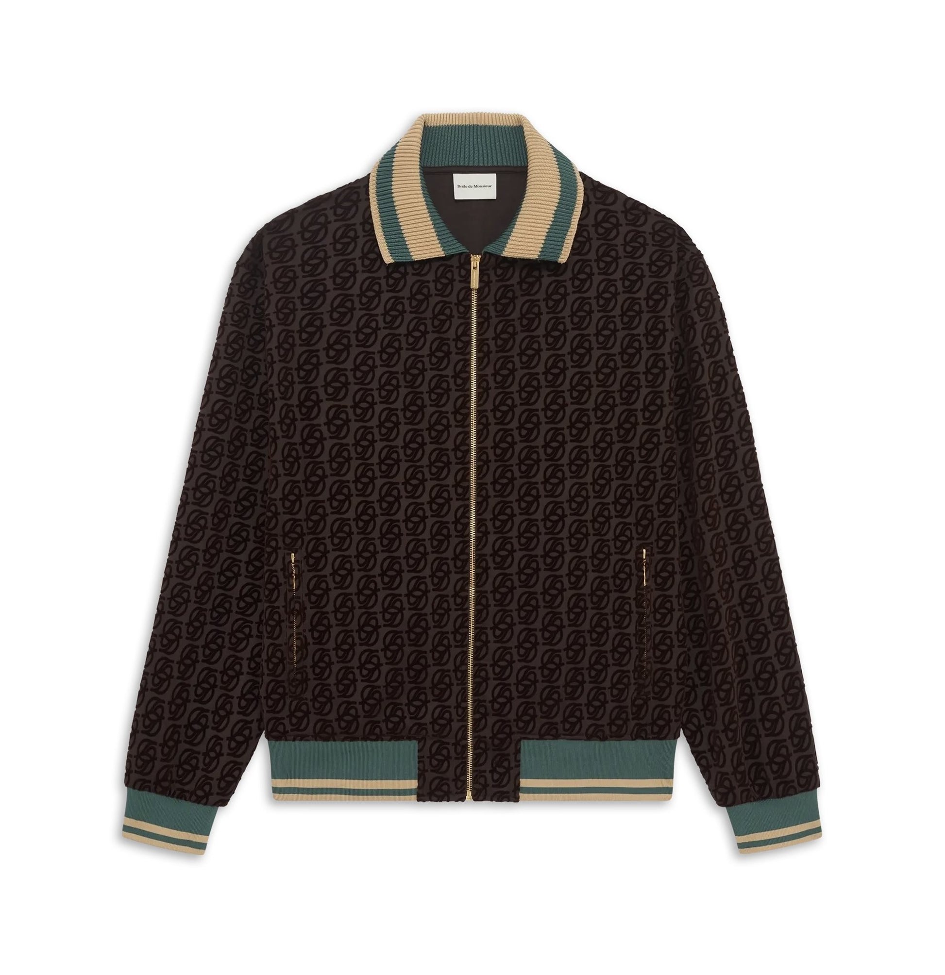 This dark brown cotton blend track jacket features an all-over 'D' mirror flocking. It has a ribbed shirt collar, two zipped piped pockets, an engraved front zip and contrasting ribbed finishes.