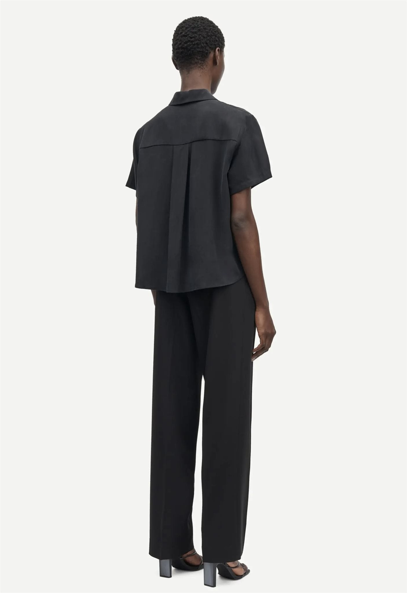 Short-sleeved shirt with a loose fit and dropped shoulders. Invisible button closure on the front. Neck yoke seam with pleated detailing. Main material made from 100% TENCEL™ Lyocell. This product contains TENCEL™ Lyocell, a low impact fibre derived from responsibly managed wood sources.